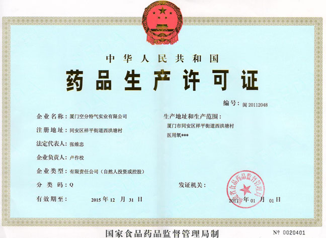 藥品生產(chǎn)許可證(正本)